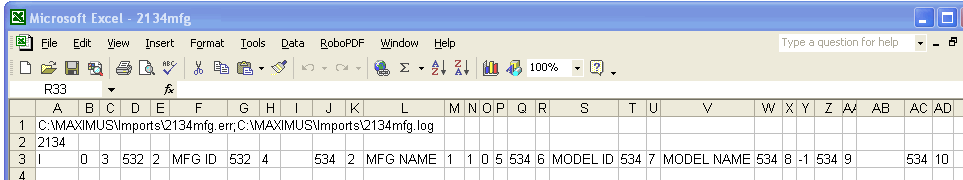 Note: The .imp file will be used to create a command file. The .xls file will be used only if additional edits need to be made in Excel. Do not open the .imp file in Excel; the data will be reformatted.
