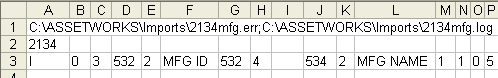 Cell C3: Number of data items included in the transaction (3 in the illustration) – For insert files, the number of values that will be entered. For modify files, the number of values that will be modified. For delete files, the number of values that will be deleted.